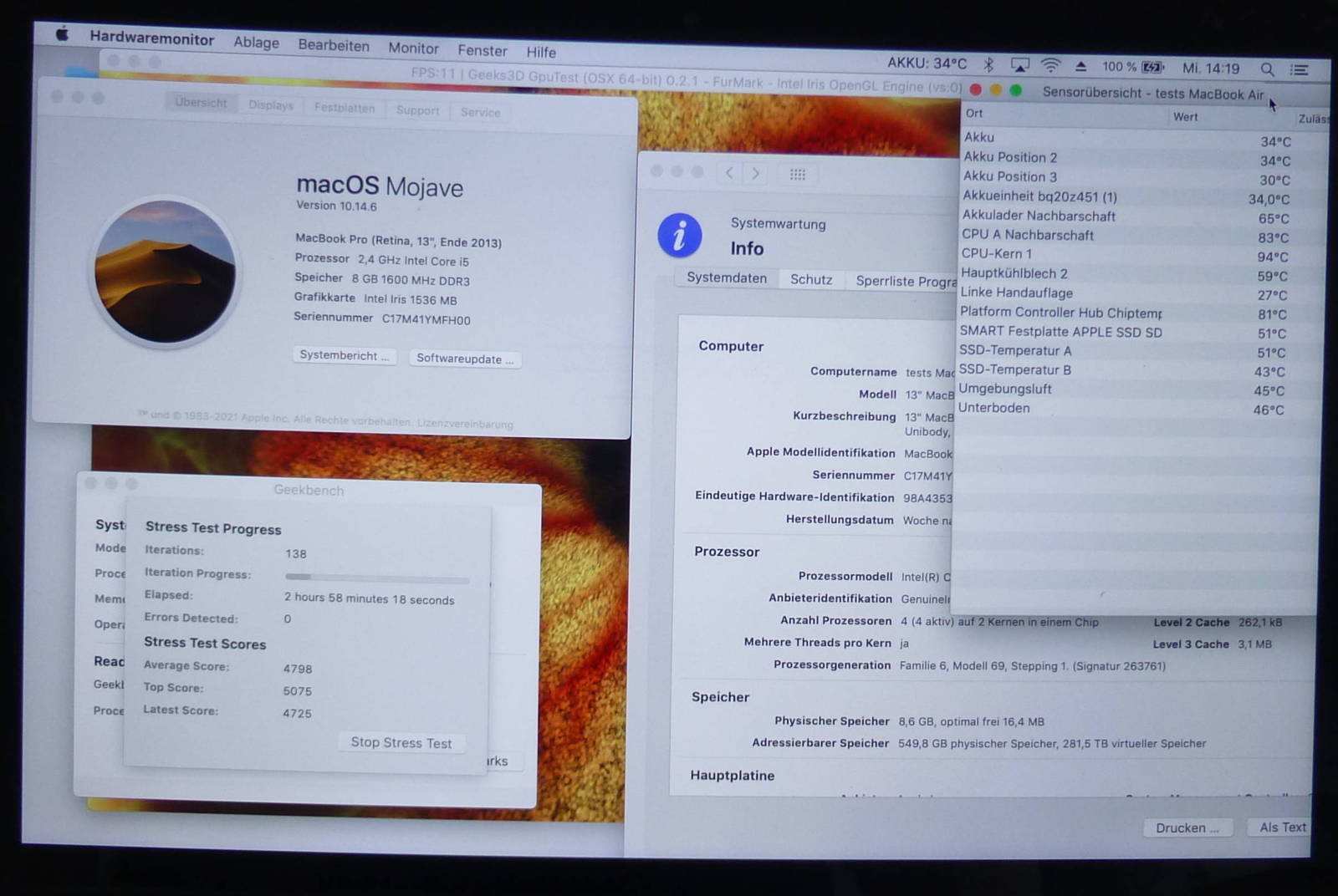 Stammt aus dem late 2013er Retina Modell, passt auch zum Mid 2014er Retina Modell!Artikelnummer: 820-3476-A